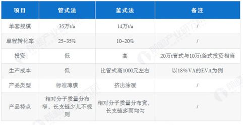 國內(nèi)外EVA生產(chǎn)主要采用高壓法連續(xù)本體聚合工藝,根據(jù)反應(yīng)器不同,高壓法連續(xù)本體聚合工藝可分為管式法和釜式法。